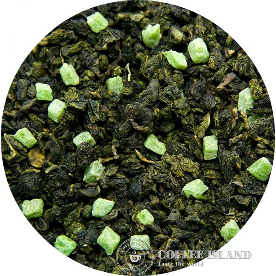 Высокогорный улун, дополненный натуральным маслом виноградных косточек, кубиками ананаса и листьями смородины которые усиливают и по-новому раскрывает вкус чая. В сухой смеси переливаются все оттенки зеленого от изумрудного до густо-травянистого.