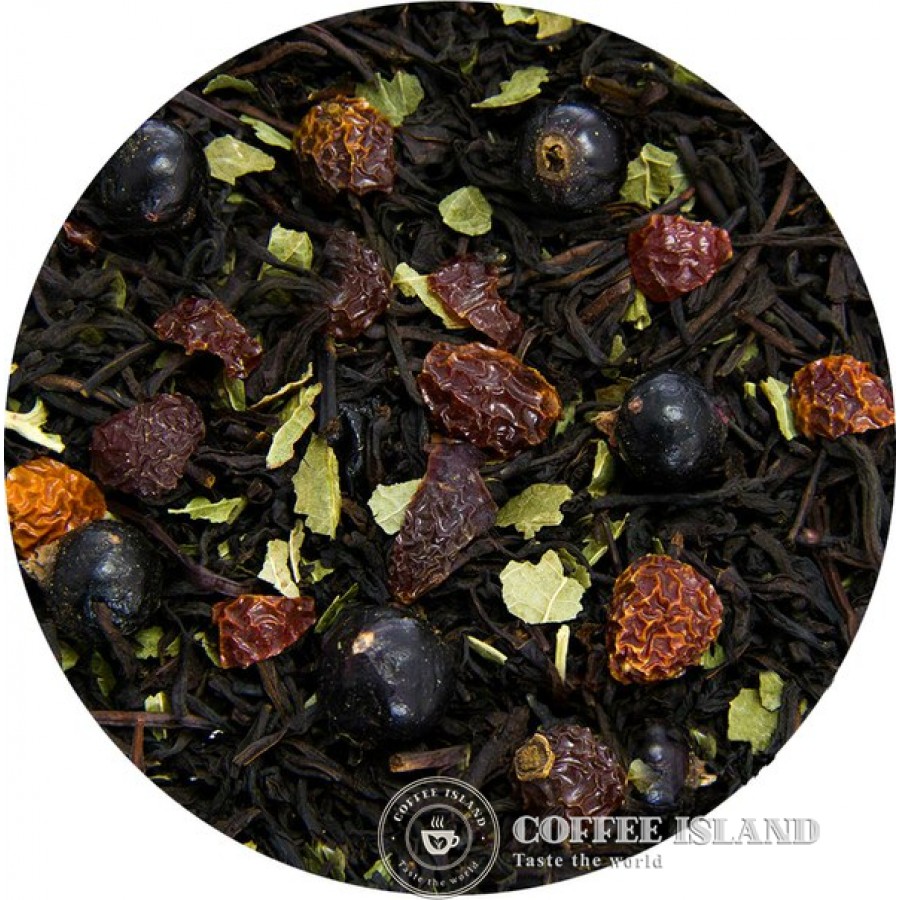 Измельченные плоды шиповника и ягоды черной смородины создают очаровывающий вкус, основой для которого является смесь черного чая, взросшего на плантациях солнечного Цейлона.