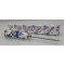 Металлическое шило для колки пуэра с белой керамической ручкой, декорированной монохромным изображением синих цветов.